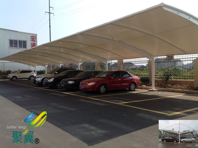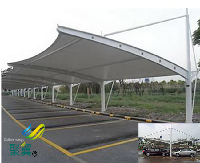 (3)膜結構車棚的經濟性:研究表明,長期露天停放的車輛,性能損耗速度比車棚內停放車輛快一倍。而采用膜結構雨蓬更能真正呵護您的愛車,減緩您愛車的老化速度。從經濟角度來說,投入不多卻大大延長您座騎的壽命。