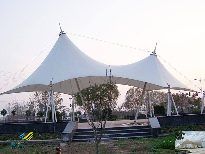 張拉膜結構是通過給膜材及加勁索施加預張力使之具有剛度并承擔外荷載的結構"又稱之為索- 膜結構。 張拉膜結構可分為邊界直接張拉成型和通過支撐、懸掛等成型兩種。張拉膜結構有如下特點;造型活潑優美"富有時代氣息,自重輕"適合大跨度的建筑,可充分利用自然光"減少能源消耗,造價相對低廉"施工速度快,結構抗震性能好"使用范圍廣。 因此在由)( 世紀( 年代產生至今得到了迅速發展"目前已廣泛應用于體育場館、展廳、娛樂場館、旅游設施等。年建造的深圳歡樂谷表演場" 它是我國建造的比較具有代表性的張拉膜結構。