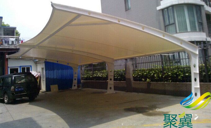 膜結構車棚作為一種現代化的工程結構,充分利用了它有限的停車空間,提升對停車位的使用效果。膜結構產品簡潔、大方實用的占地面積。其表面無靜電,對灰塵沒有吸附力,易清洗,保持亮麗潔白的樣子。