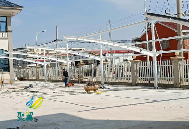 目前遇到的一些項目中,設計院通常把膜結構的設計和分析工作全部委托給專業膜結構車棚公司。 覆蓋大跨度空間,膜結構車棚中所使用的膜材料每平方壹公斤左右,由于自重輕,加上鋼索、鋼結構高強度材料的采用,與受力體系簡潔合理——力大部分以軸力傳遞,故使膜結構適合跨越大空間而形成開闊的無柱大跨度結構體系。 膜結構車棚的牢固性是**重要的,不管是在汽車停車上使用,還是在膜結構車棚自行車棚的安裝中我們都需要特別注意車棚的牢固性,只有保證了膜結構車棚的牢固性才能夠保證汽車的安全。在今天這個需求膜結構車棚的時代,我們更需要注意汽車停車棚的安全,注意保護每一輛汽車的安全使用。